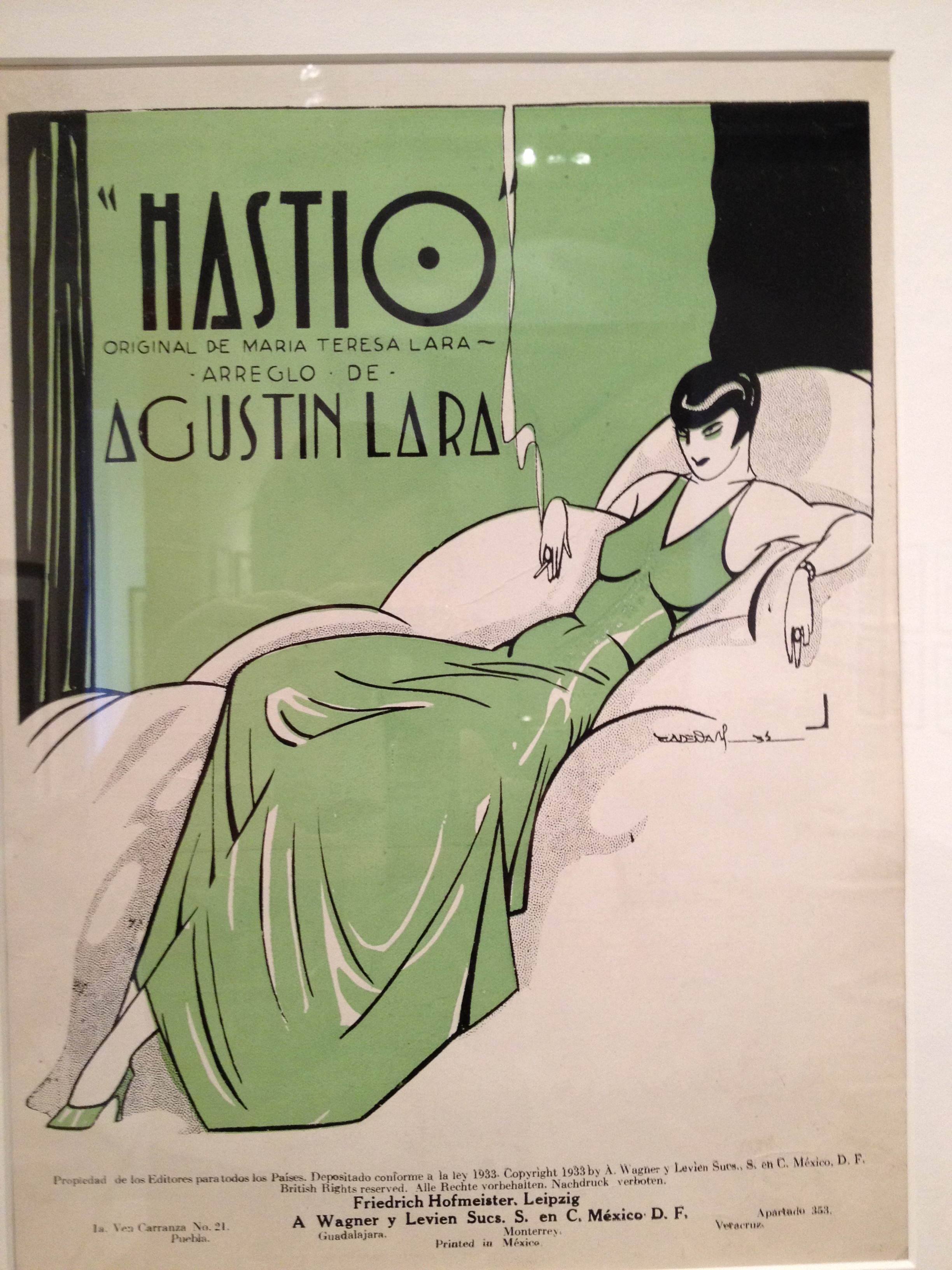 The Museo Del Estanquillo, in downtown Mexico City, has a jaw-dropping exhibit up right now called “Illustrated Mexican Sheet Music: An Unheard Treasure.” Many of the examples are from the 1920s or thereabouts, and show how hard Mexico fell for the art deco style, the remnants of which one can still see in the architecture in neighborhoods like Condesa. These sheet music covers offer a lesser-known example of the Mexican take on deco, and amount to a stunning display of graphic (and often, erotic) sophistication.